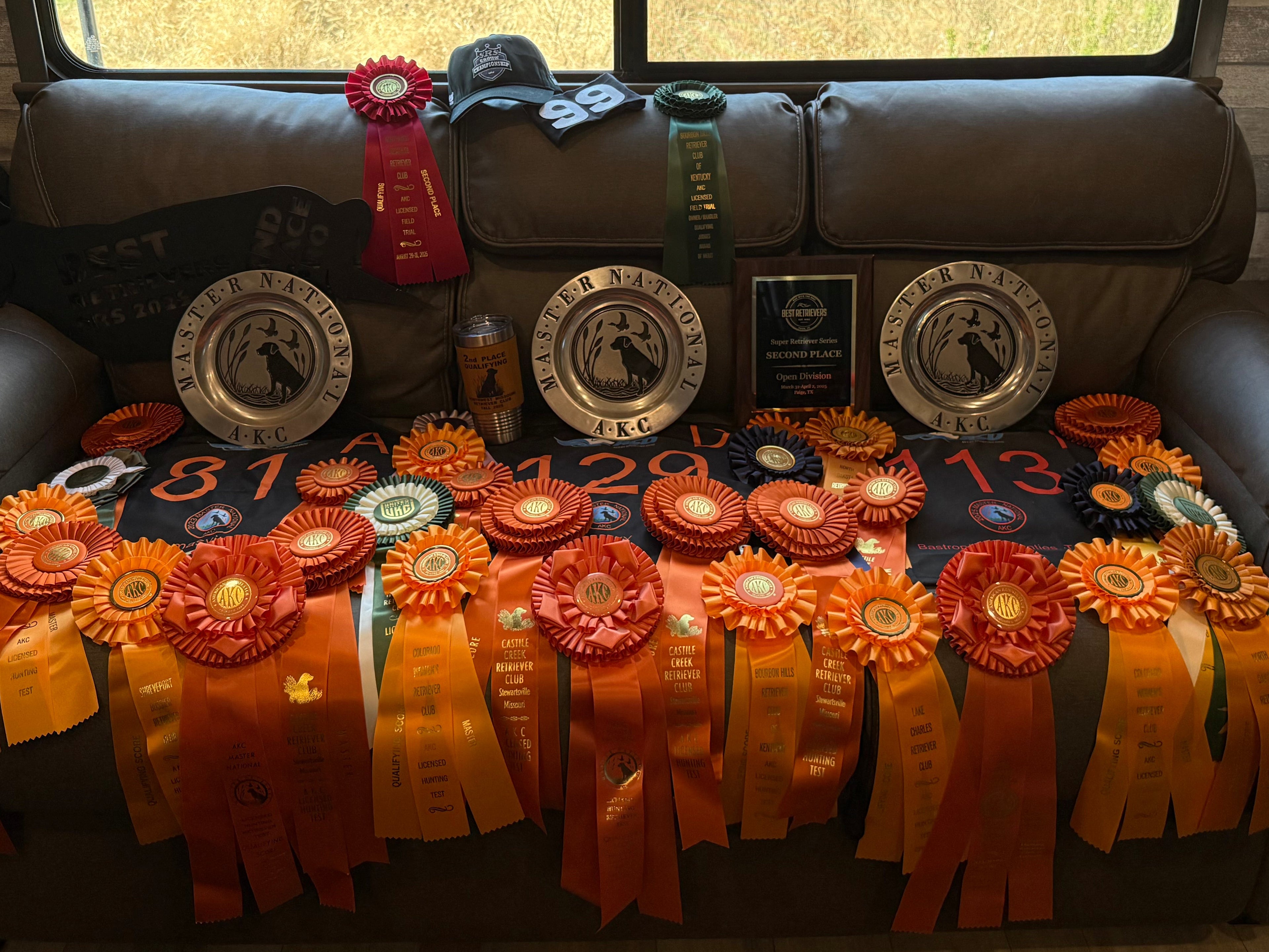 Robinson Retrievers founded and operated by Preston and Layton Robinson, is more than a kennel. At its core, it's our family. Our team isn't just the two of us, its the loyal dogs who built this dream with us. River, Storm and Envy, and our tiny mascot Stella are woven into every part of our day.